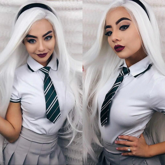 Long White Straight Lace Front Wig – Synthetic Glueless Wig for Women | Snow White Cosplay Ready-to-Wear Wig