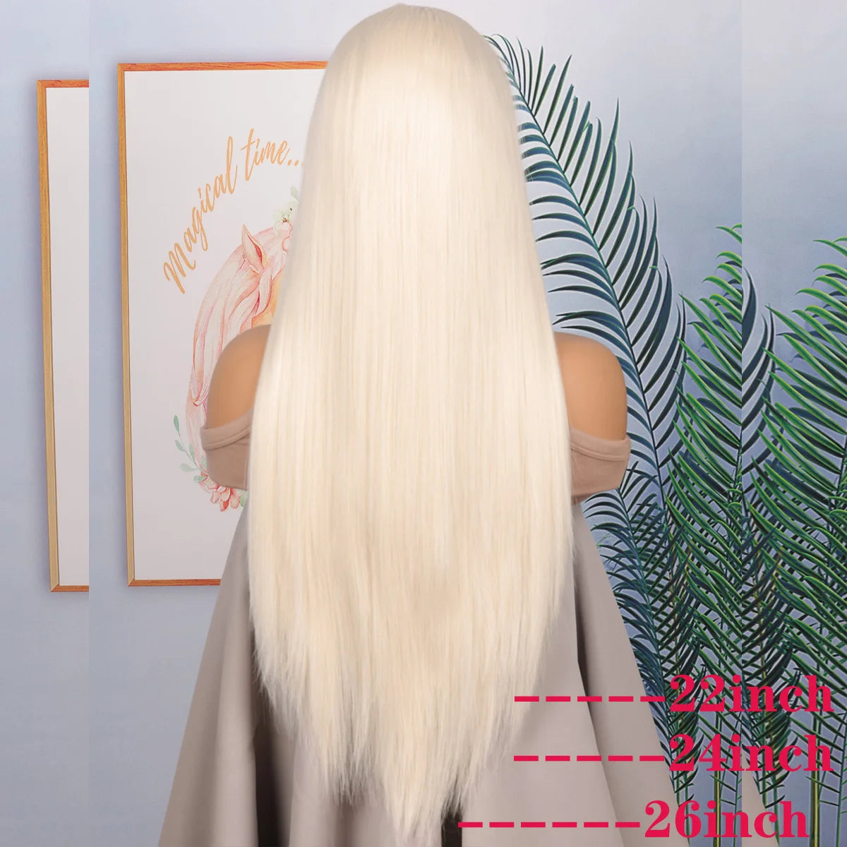 White Straight Lace Front Wig – 26” Synthetic Glueless Daily Wear Wig with Baby Hair (180% Density)